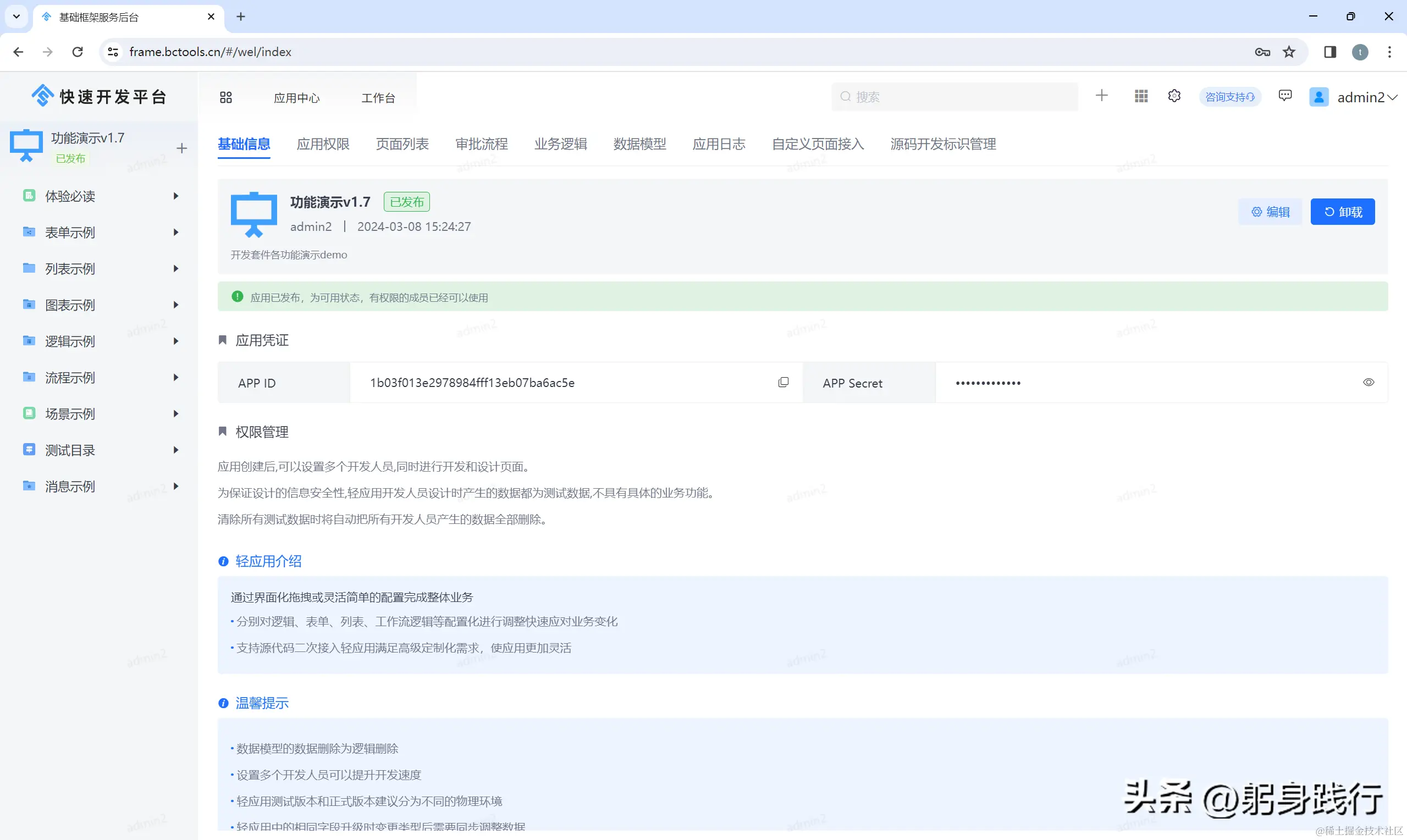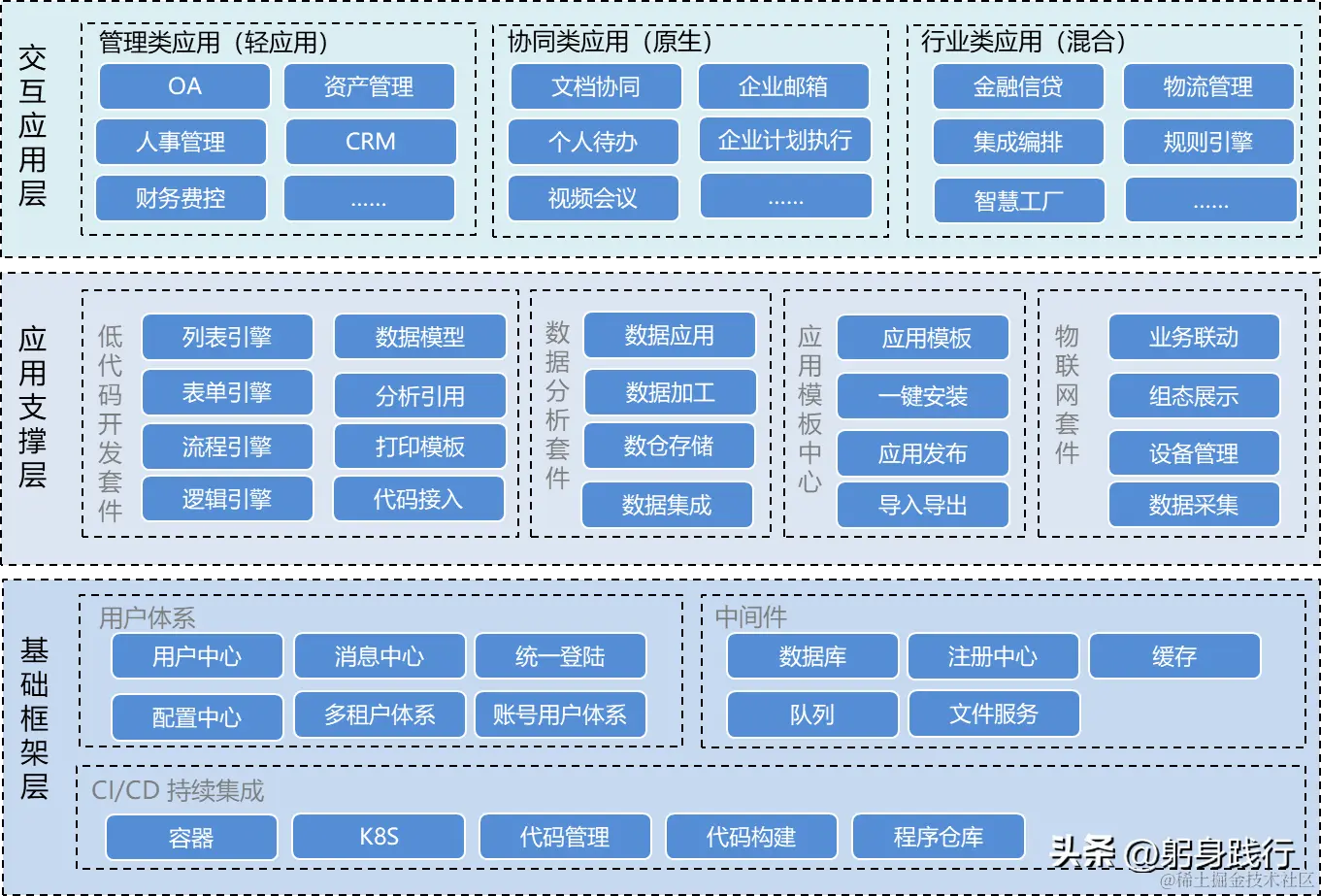 **低代码开发套件:**页面、流程、逻辑配置化、自动构建业务应用,集成自动化部署工具,形成可持续升级配置的快速开发工具,支持源码扩展接入