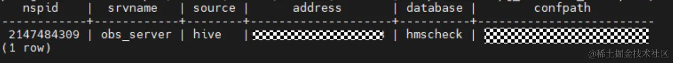 除了存储在pg_namespace中的相关信息外,external schema连接相关的配置信息都会记录在pg_external_namespace中。