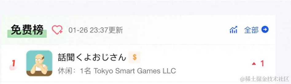 1月26日,【話聞くよおじさん(听我说,老头)】登顶日本AppStore免费游戏榜。