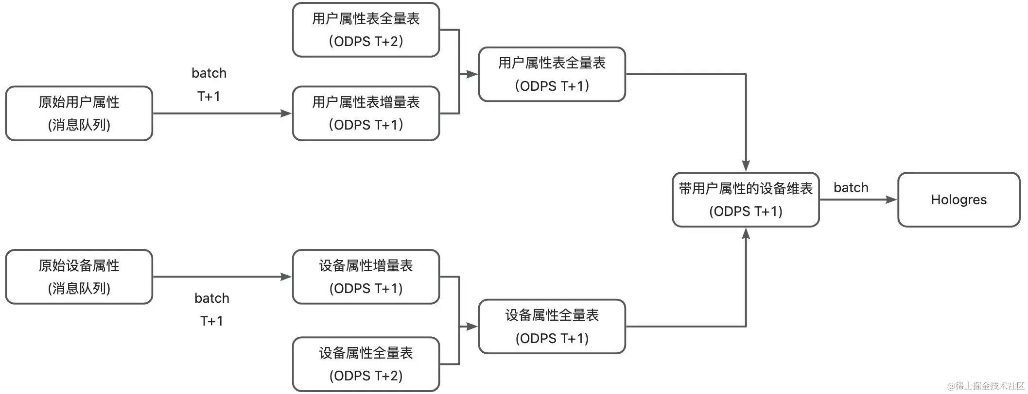 由于设备属性表中带有该设备关联的用户属性信息,加之这种全量和增加合并的实现方式导致链路复杂,导致每天产出全量分区容易有问题导致不能按时产出,新增业务也比较复杂,全量和增量割裂。