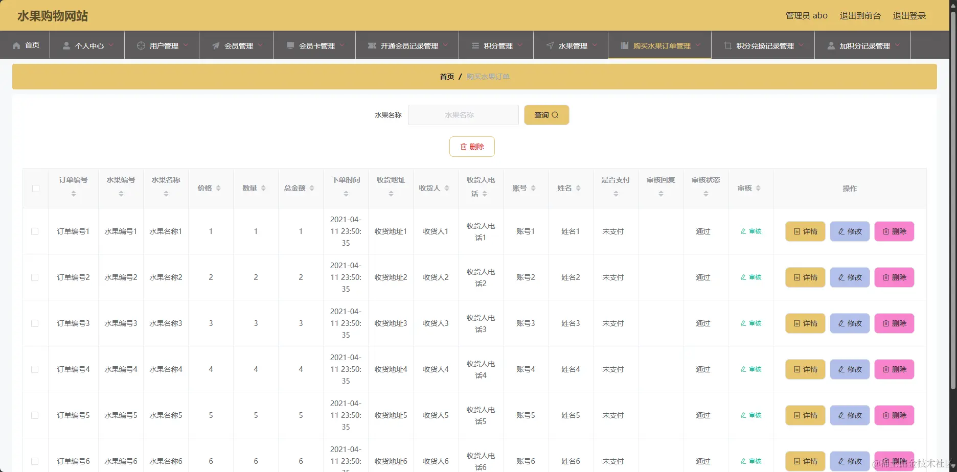 管理系统-水果订单管理信息页面