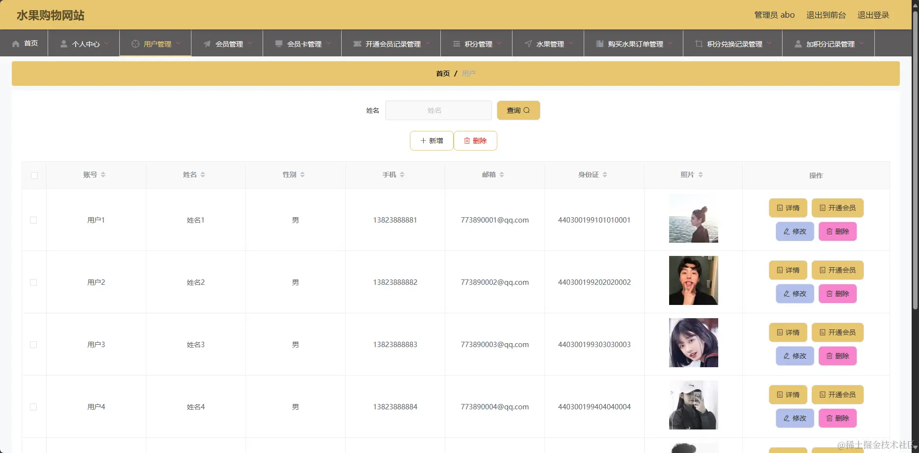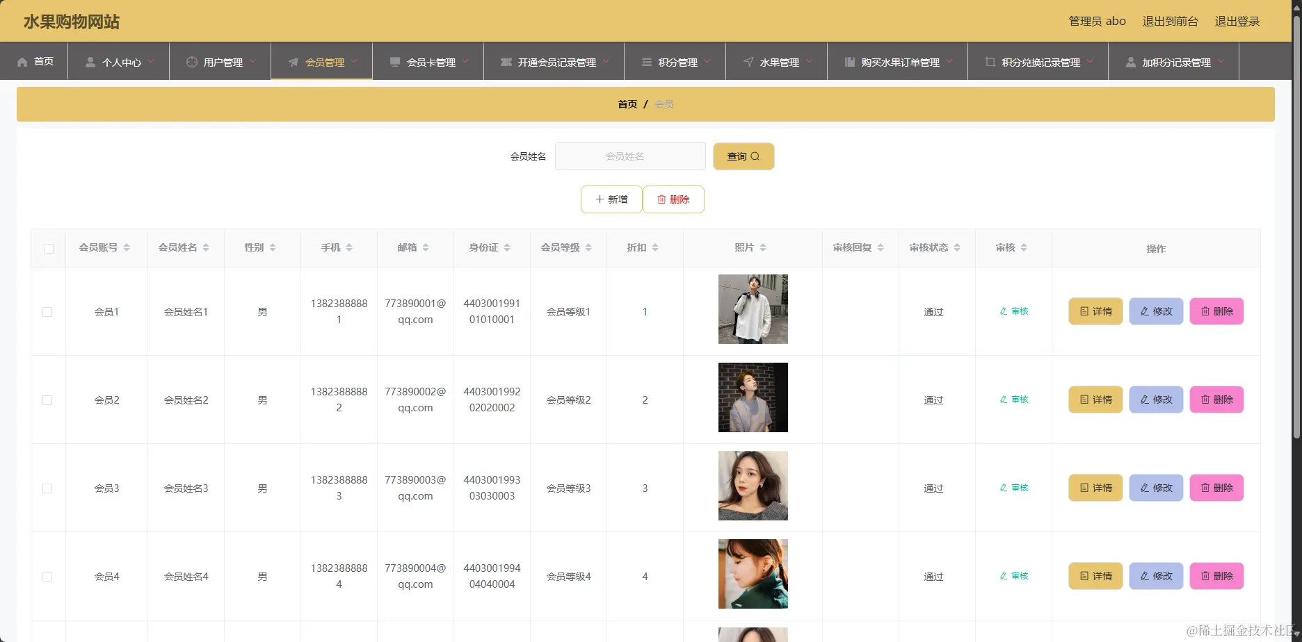 管理系统-会员管理页面