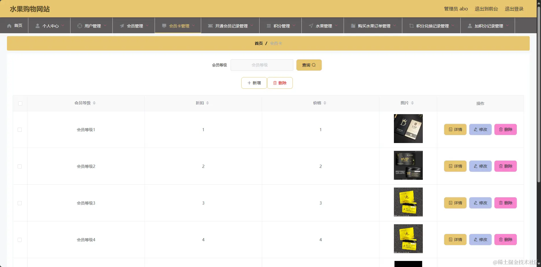 管理系统-会员卡管理页面