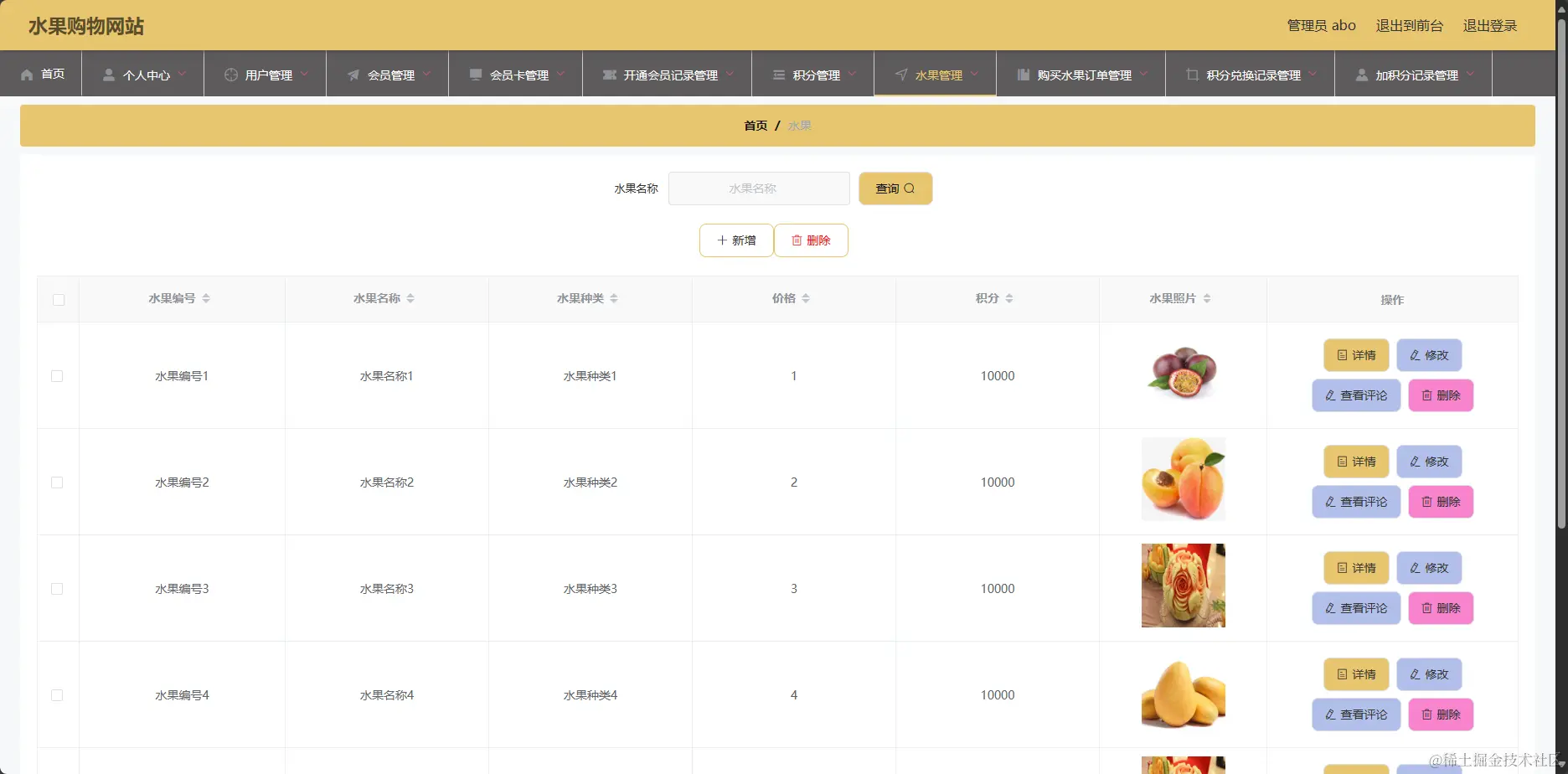 管理系统-水果管理信息页面