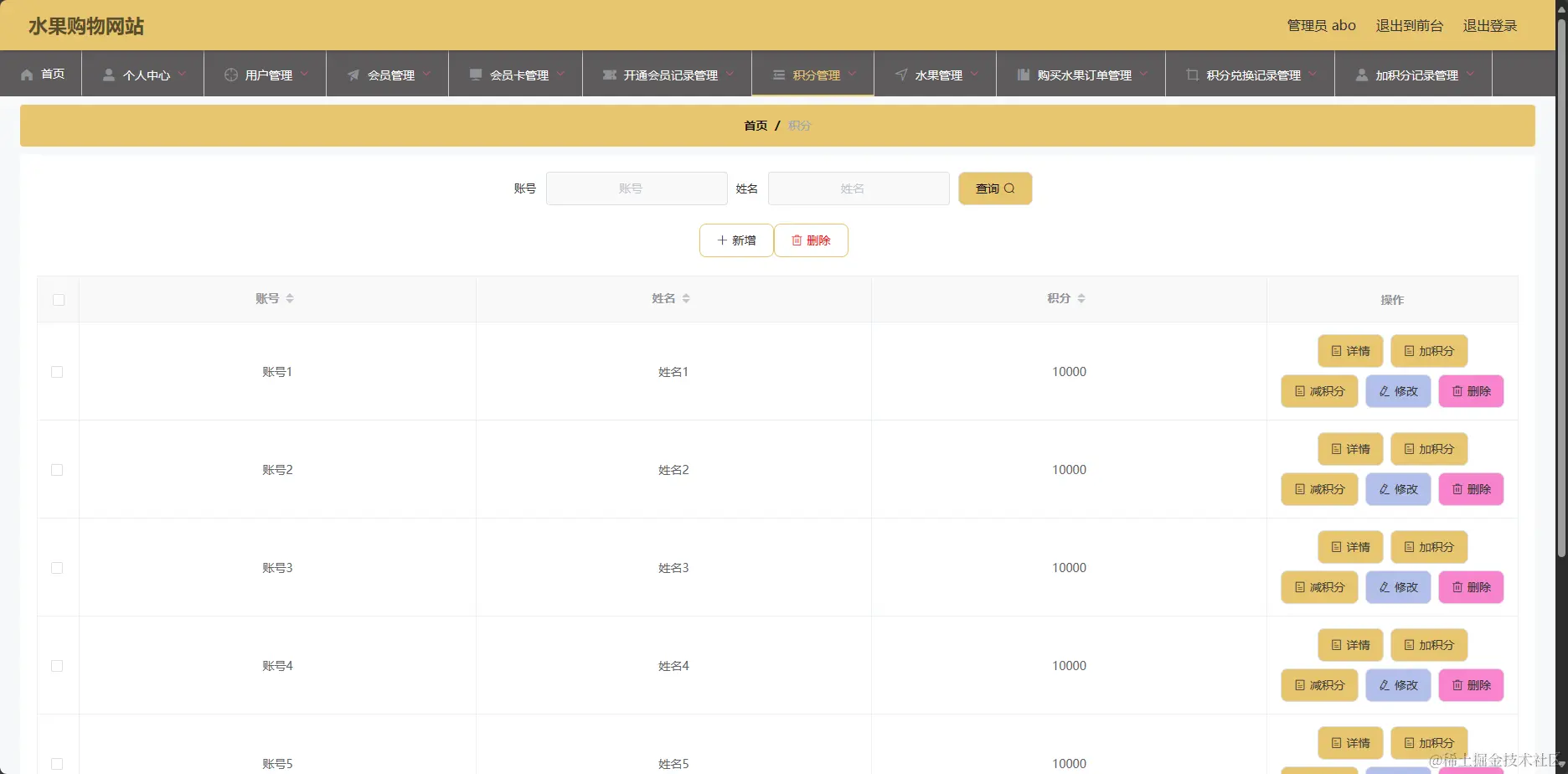 管理系统-积分信息页面