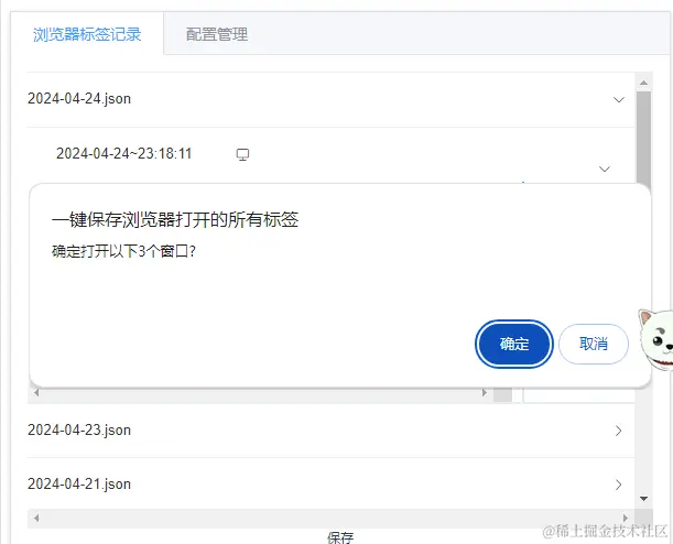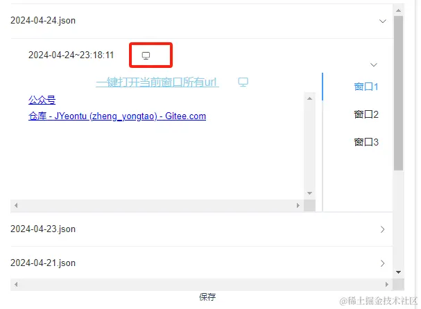 已保存的tab标签记录都会在页面上显示,点击下方保存按钮可以将当前打开的所有tab标签页保存。