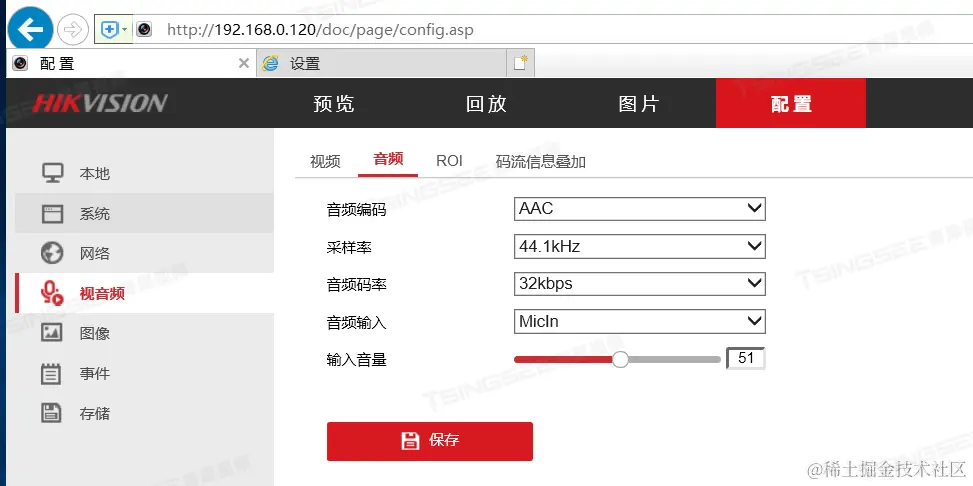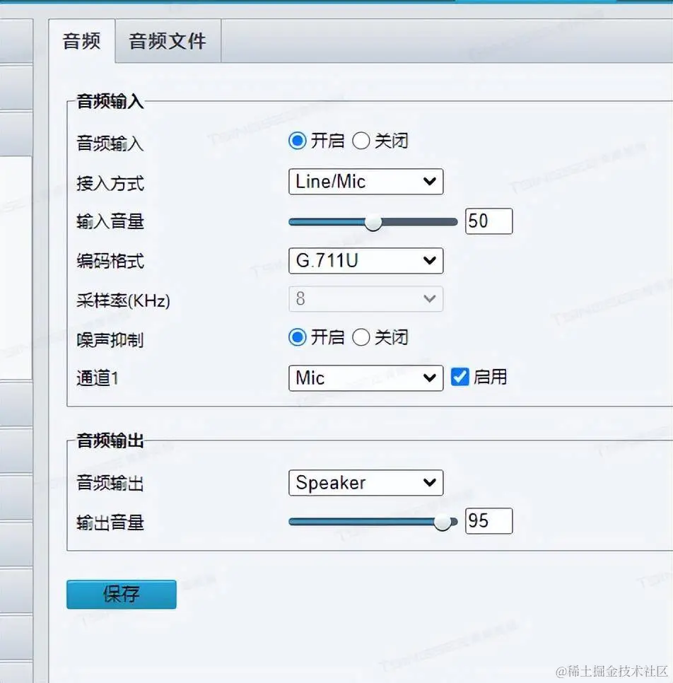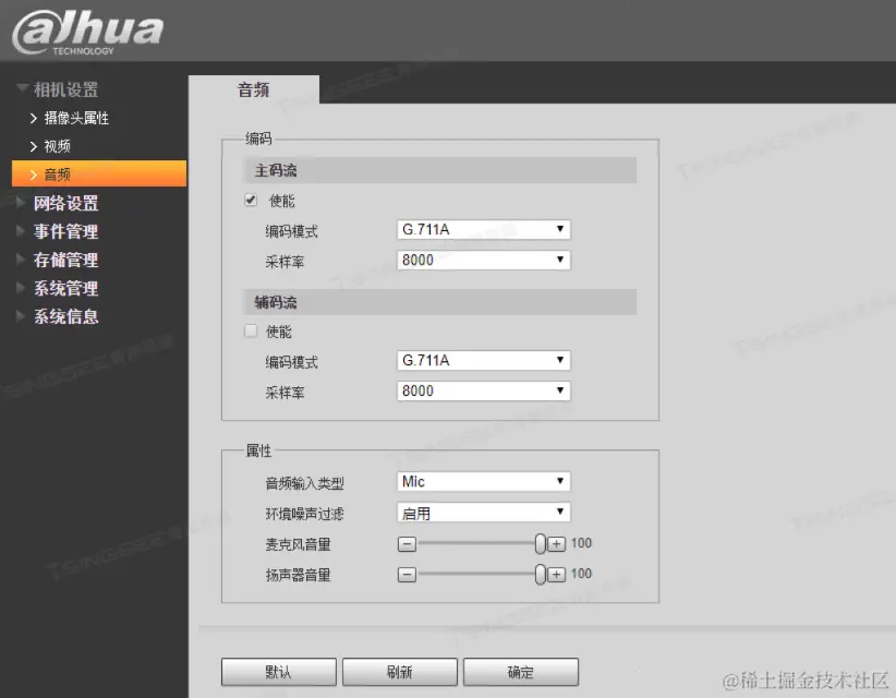 - 音频输入类型选择mic,音频编码可以选择G.711A