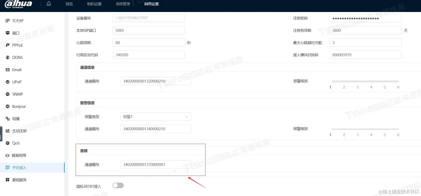 - 某些大华设备的语音通道可以配置编号,这里填写固定的:34020000001370000001