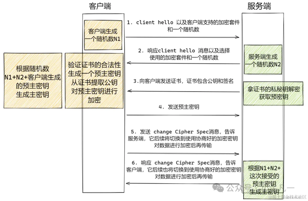 提到的证书发给客户端),这两个随机数都是明文的; - 而第三个随机数N3(预主密钥),客户端用