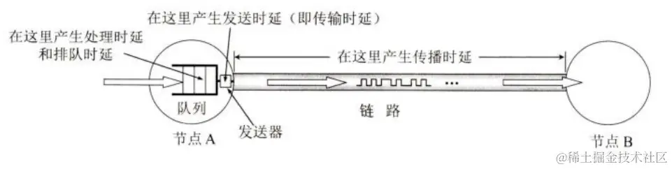 (4)处理时延:主机或路由器在收到分组时进行处理要花费的时间
