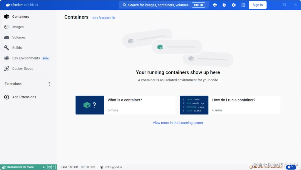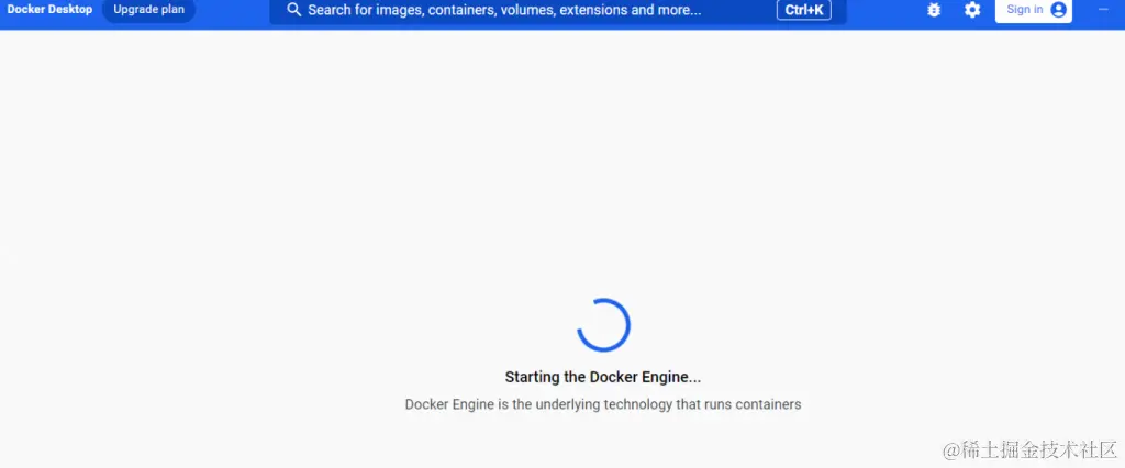 然后看到下图界面就说明Docker Desktop启动成功了。