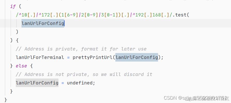 最后翻看源码发现是因为本地网路的问题,我本地的网路连接之后的ip是172.200.0.32,在源码中有一段判断的正则,没有命中,结果导致的这个启动报错!