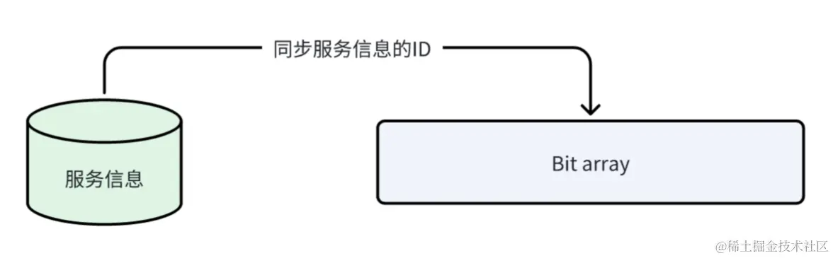 将要查询的元素通过N个散列函数提前全部映射到Bit array中,比如:查询服务信息,需要将全部服务的id提前映射到Bit array中,当去查询元素是否在数据库存在时从布隆过滤器查询即可,如果哈希函数返回0则表示肯定不存在。
