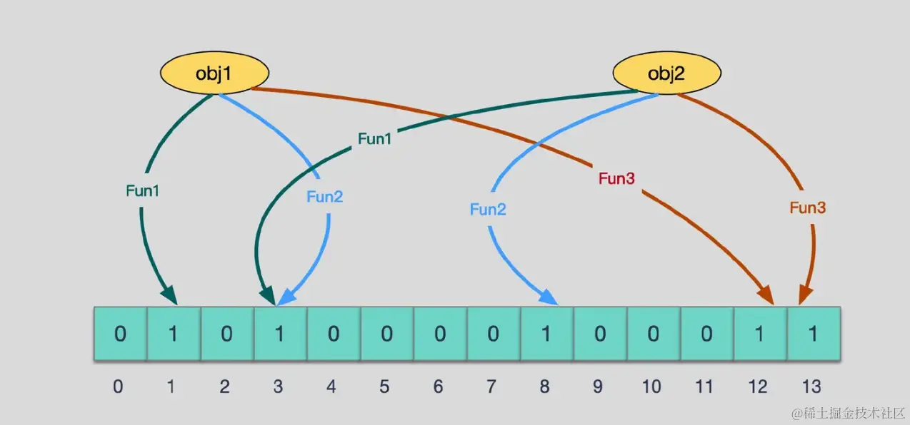 它使用多个Hash函数将一个元素映射成一个位阵列(Bit array)中的一个点,将Bit array理解为一个二进制数组,数组元素是0或1。