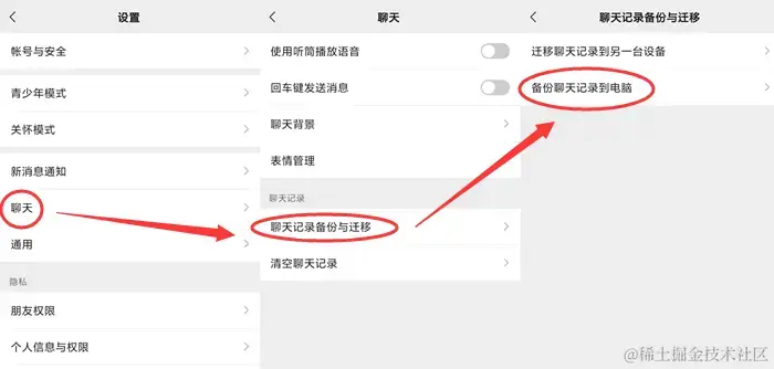 步骤2:在【聊天】中进入 【聊天记录备份与迁移】 ,选择 【备份聊天记录到电脑】 ,就可以将照片导出到电脑上啦!