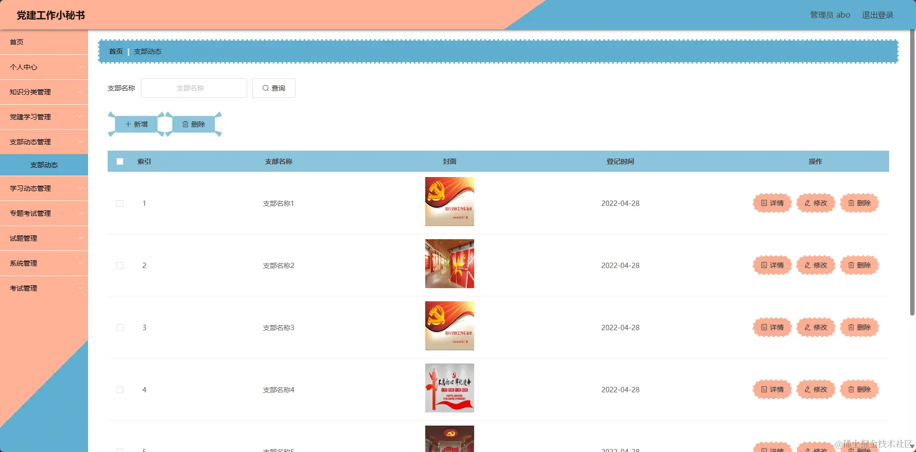 管理系统-支部动态管理页面