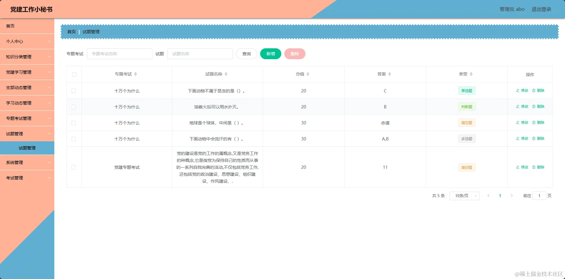 管理系统-试题管理页面