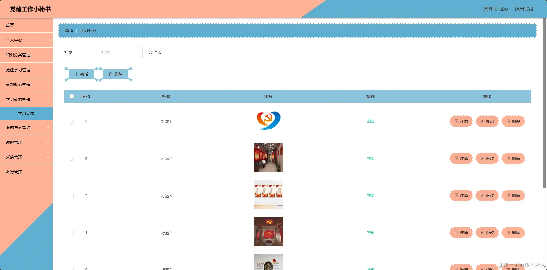 管理系统-党建学习页面