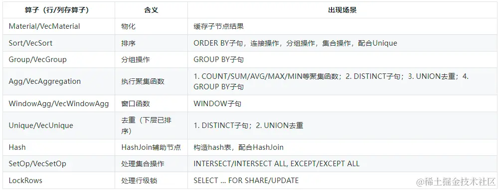 物化算子是一类可缓存元组的节点。在执行过程中,很多扩展的物理操作符需要首先获取所有的元组才能进行操作(例如聚集函数操作、没有索引辅助的排序等),这是要用物化算子将元组缓存起来;