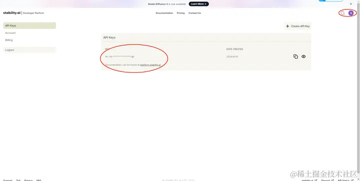 第二步,安装好comfyui之后,打开stablediffusion官网,用邮箱登录后可以得到一串序列号,这个序列号就是体验的API,