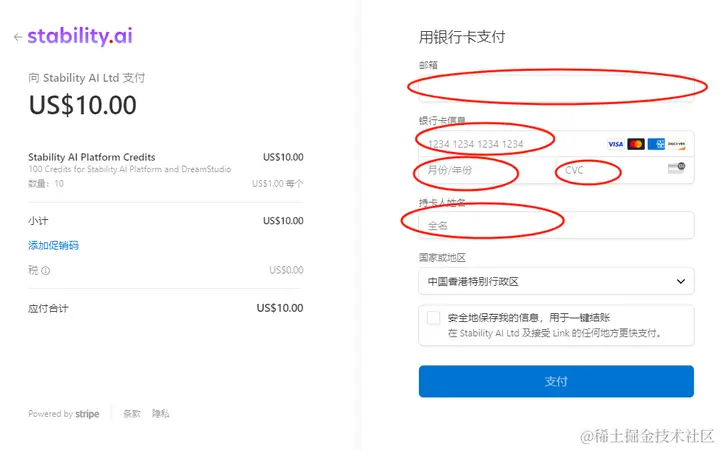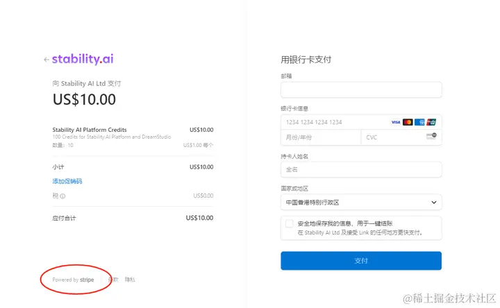 就会跳转到付款界面,又是喜闻乐见的stripe支付通道,老粉都知道这个通道是不支持国内注册的银行卡的,需要准备一张虚拟卡用来做搭桥支付(从微信支付宝充值到虚拟卡,再从虚拟卡充值到SD)