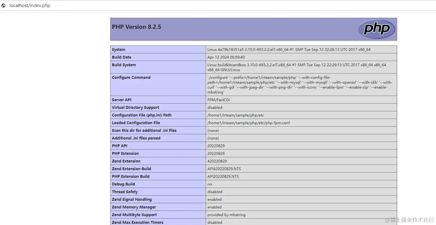 4a79b18351a5 php-fpm:8.2.5 "./sbin/php-fpm -c /…" 25 hours ago Up 25 hours 0.0.0.0:9000->9000/tcp php-fpm