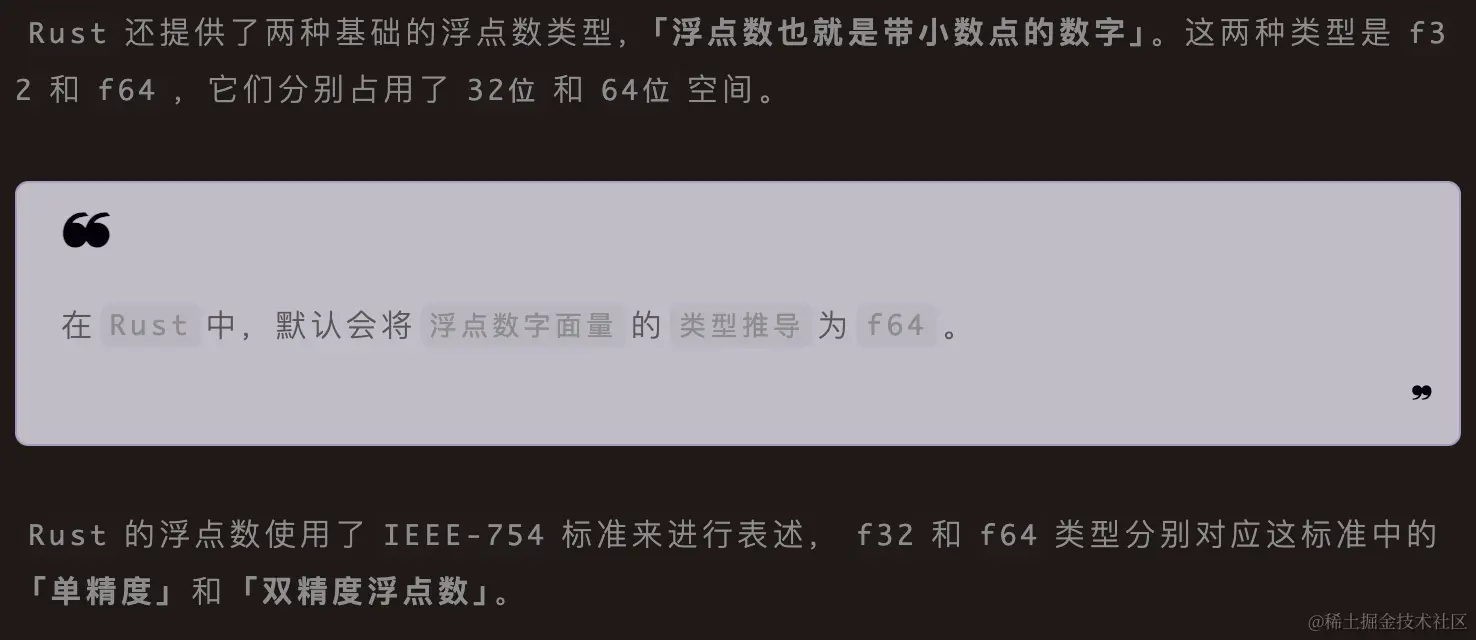 单精度和双精度浮点数(例如,f32、f64)