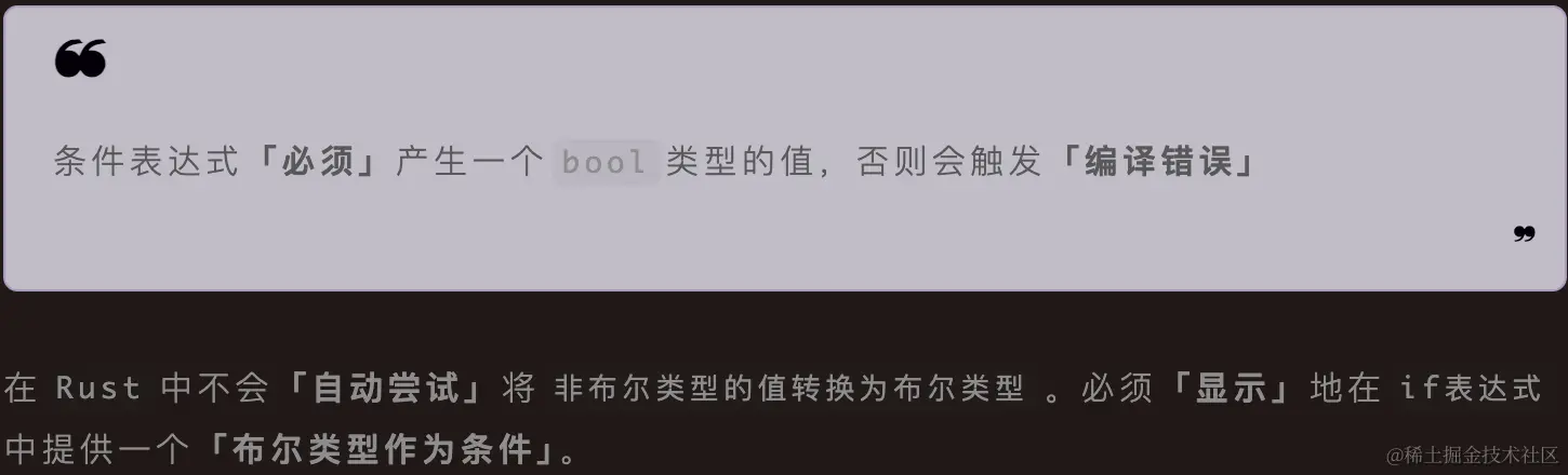 Rust的布尔类型只拥有两个可能的值true和false,它只会占据单个字节的空间大小。使用bool来表示一个布尔类型。