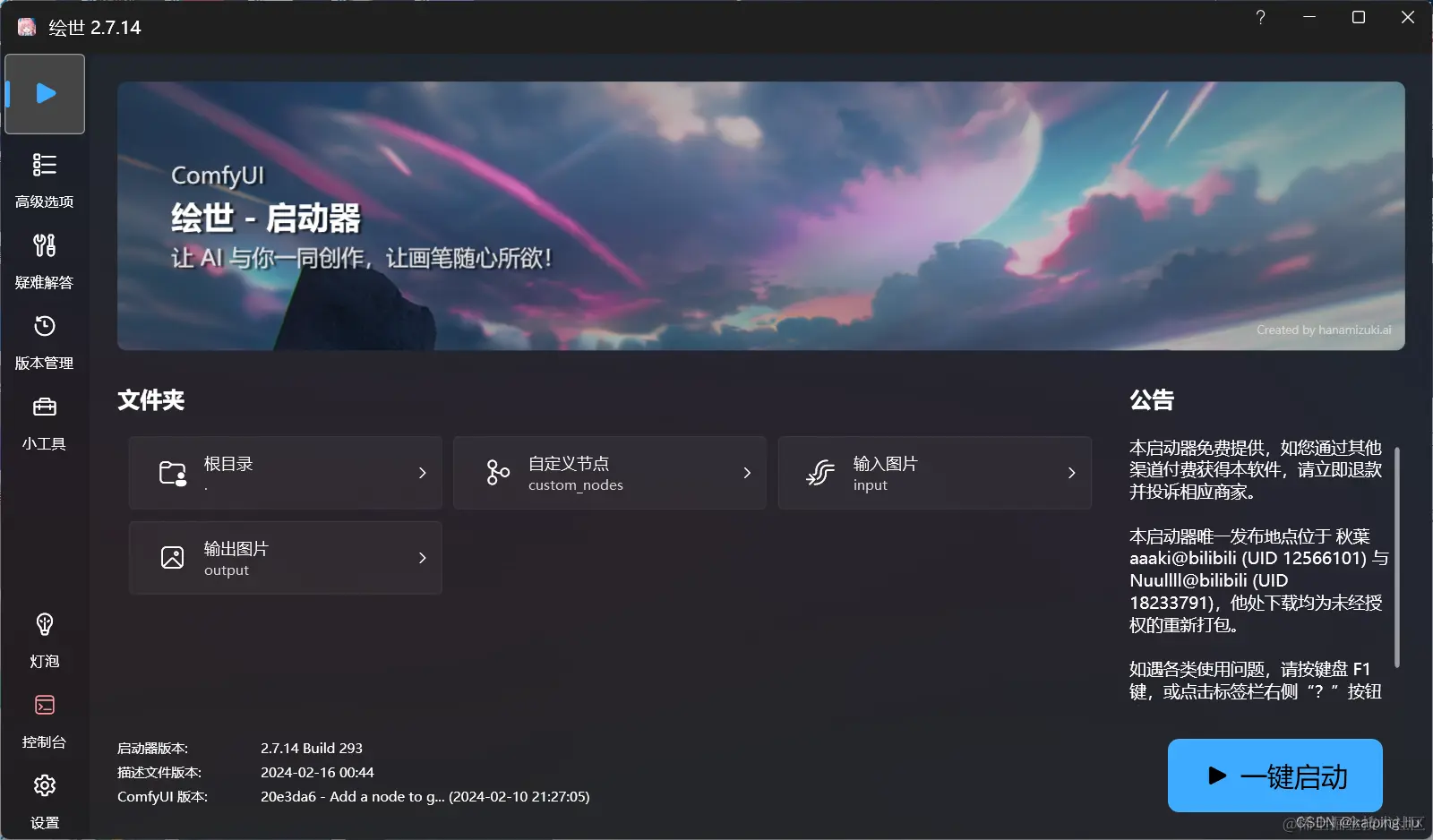 B 站的秋叶大佬在 1 月份就已经发布了 comfy ui 的整合包。用户将压缩包下载后,能够一键启动 comfy ui。其便利性与之前的 webui 整合包如出一辙。然而在整合包下载完成后,新手或许会遭遇插件以及模型缺失的情况,同时也不清楚该如何运行工作流等问题,本文将引领大家完成 comfy ui 的安装,并运行首个工作流。