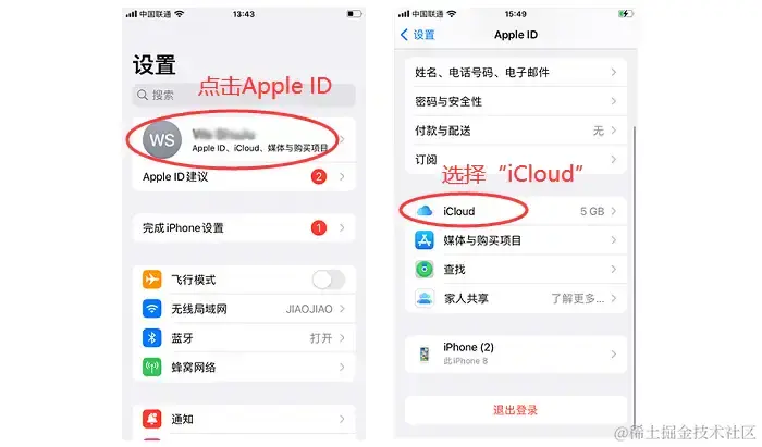 Step 1:只需前往iPhone的**【设置】,点击【Apple ID】>【iCloud】**。