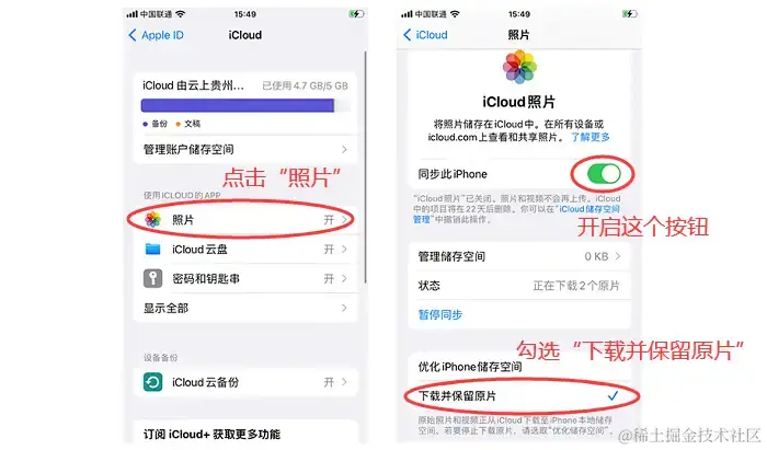 Step 2:接着选择**【照片】,开启【同步此iPhone】**按钮。
