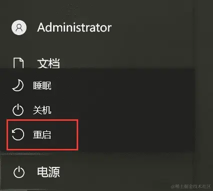 (1)点击电脑左下角的【开始】,选择【电源】选项,然后按住【Shift】键的同时点击【重启】;