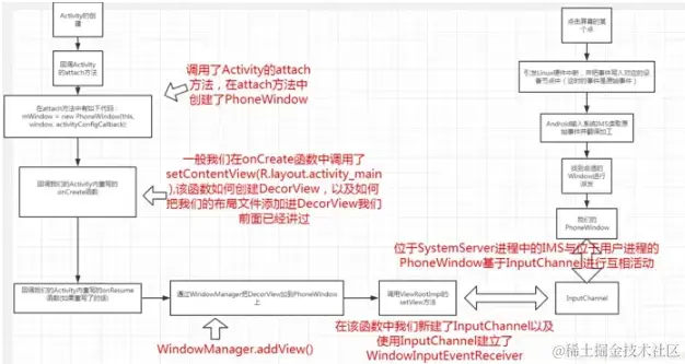 在attach()方法的时候,通过上面的流程图我们知道,当我们的PhoneWindow创建完成之后,我们也在该Window上注册了InputChannel并与IMS通信,