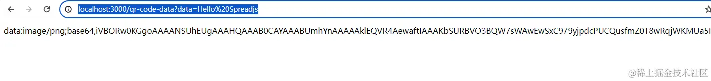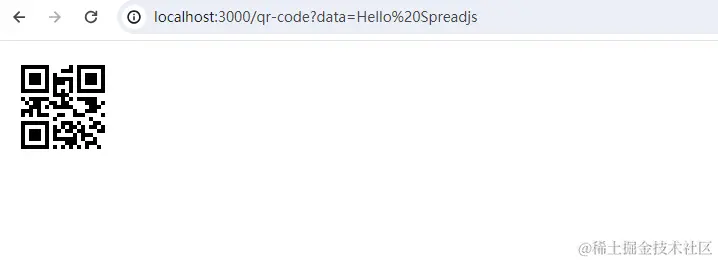 - 打开浏览器,在地址栏中输入http://localhost:3000/qr-code?data=Hello%20Spreadjs
