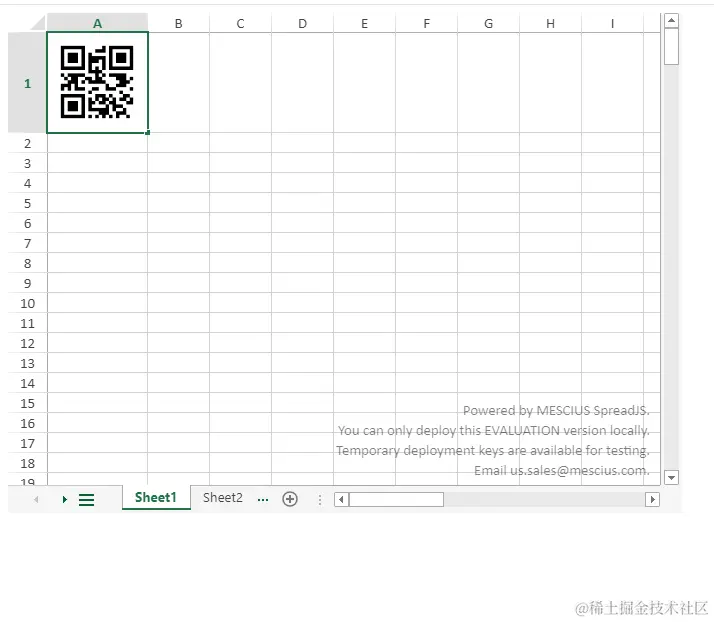 SpreadJS 是葡萄城推出的基于 HTML5 标准的纯前端表格组件,具备高性能、跨平台、与 Excel高度兼容的产品特性,其设计目的是帮助开发者快速实现浏览器中各类 Excel 表格应用,已成功在数据填报、在线表格文档、类 Excel 报表制作与生成、企业预决算、计量检测、实验室管理等领域得到广泛应用,可让您快速具备与飞书、语雀、灵犀文档等同源的表格开发能力。下图是使用 SpreadJS 实现的一个二维码样例: