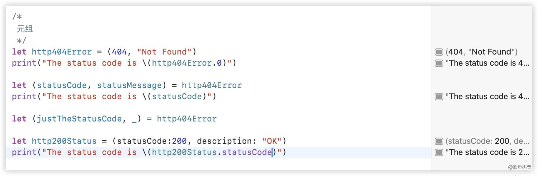 print("The status code is \(http200Status.statusCode)")