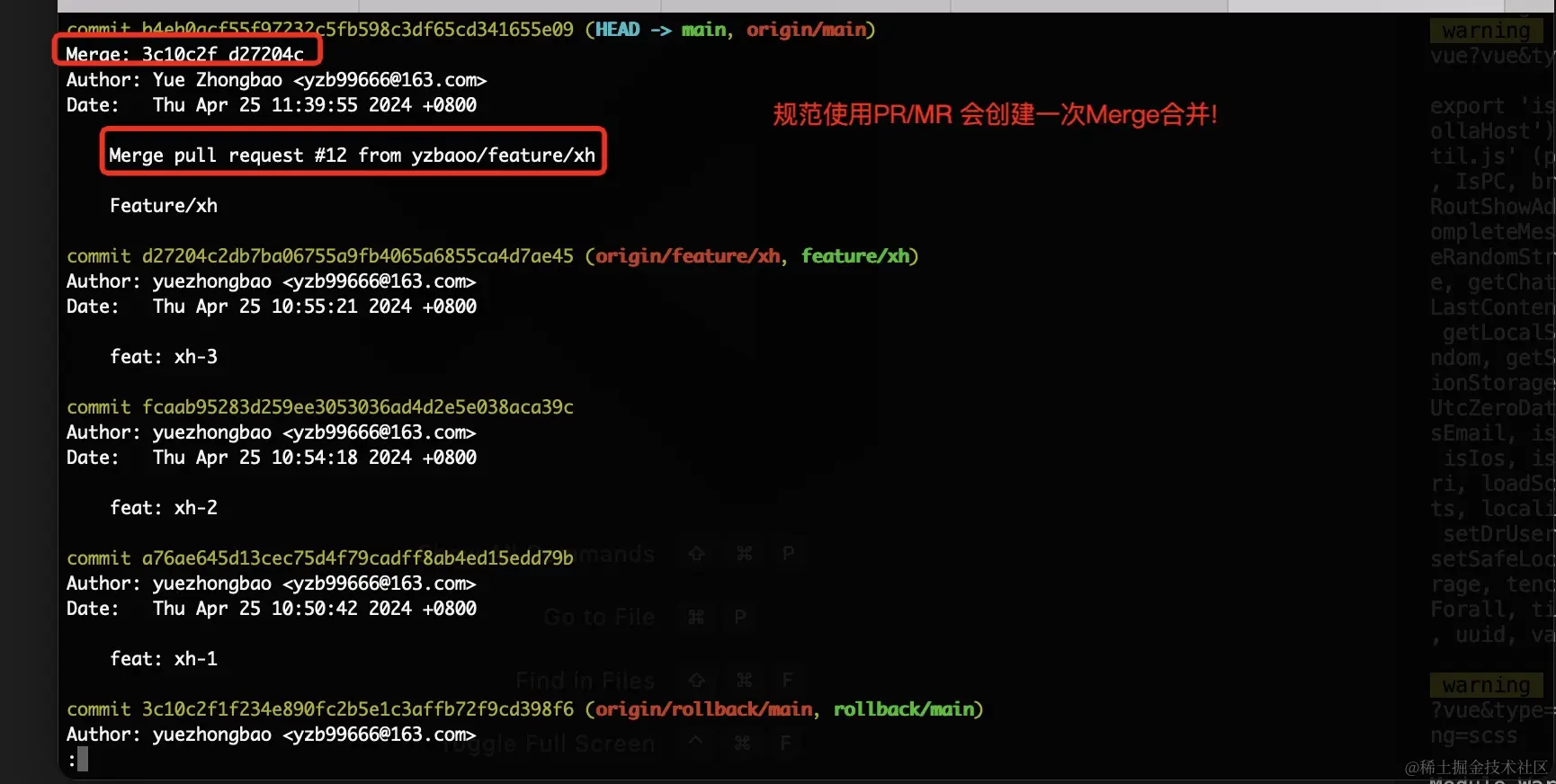 产生这种问题的原因是没有通过github或gitLab创建MR或者PR,小红直接手动merge+push.