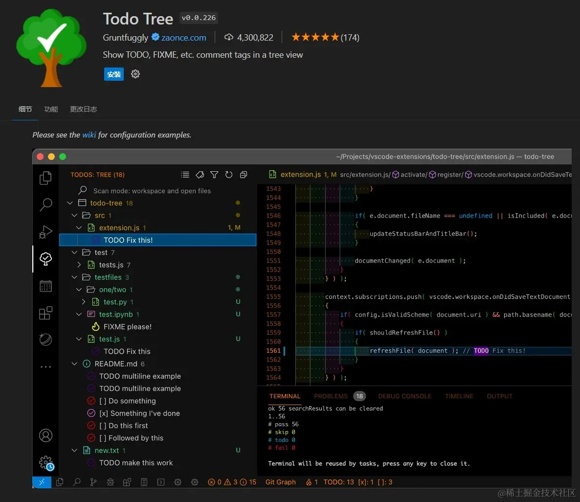Todo Tree这个时候能派上大用场了,它可以帮助你管理项目中的 TODO注释和其他标记,让你很轻松就能跟踪项目中的任务。