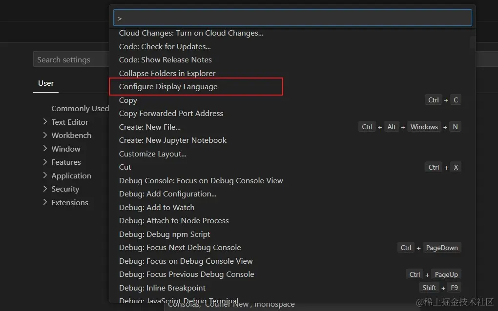 1.快捷键Ctrl+Shift+P或者F1 打开全局命令面板,找到Configure Display Language
