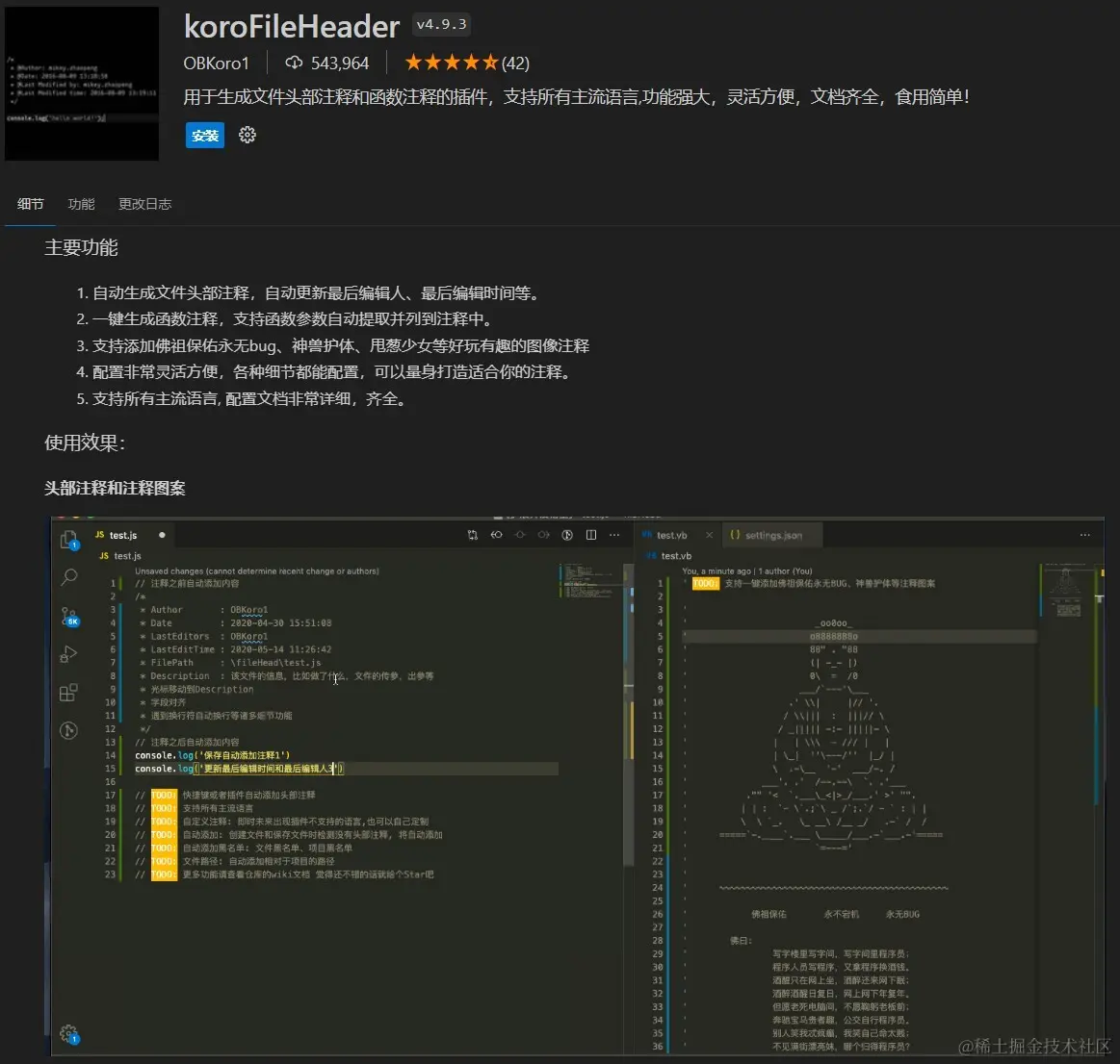可以自动生成文件头部注释,自动更新最后编辑人、最后编辑时间等。