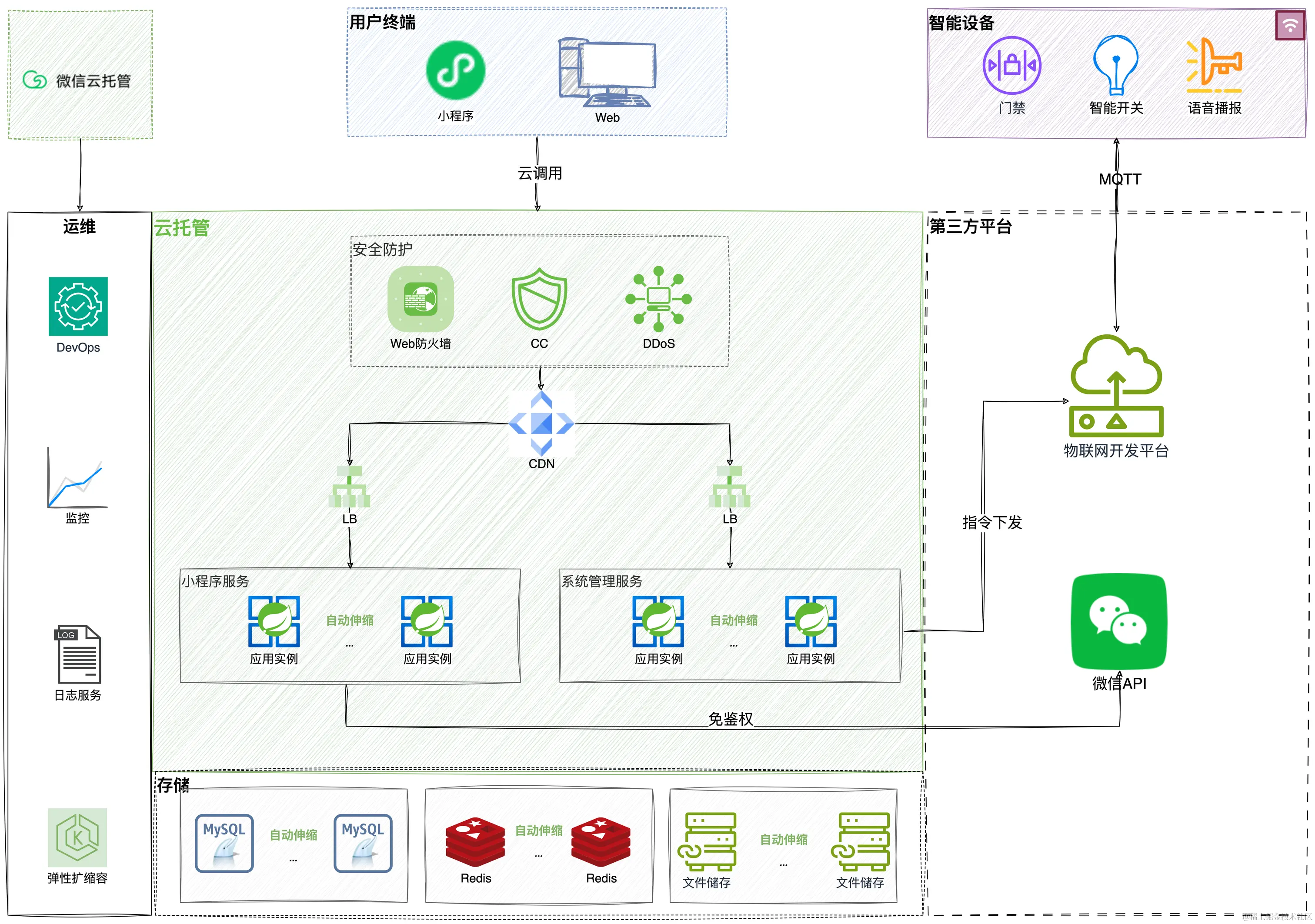 下面是基于云托管的技术架构图