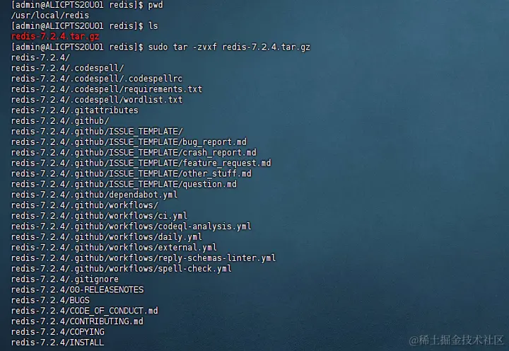 sudo tar -zvxf redis-7.2.4.tar.gz
