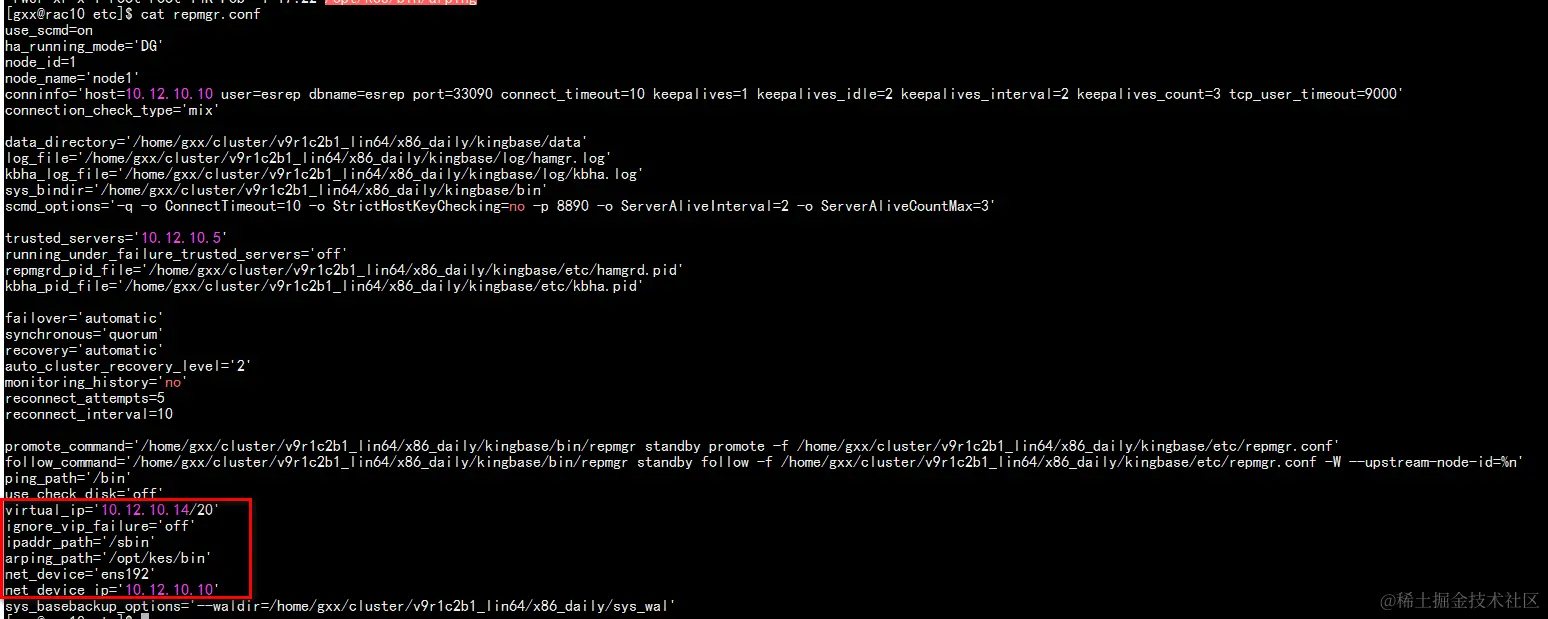 ①修改完repmgr.conf文件后,可以执行./KBha.sh –A loadvip指令进行检测,该指令执行时也会用到repmgr.conf中的配置信息。