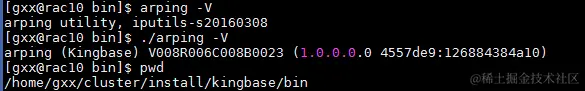 kes自带版本(kingbase/bin路径下执行):./arping -V