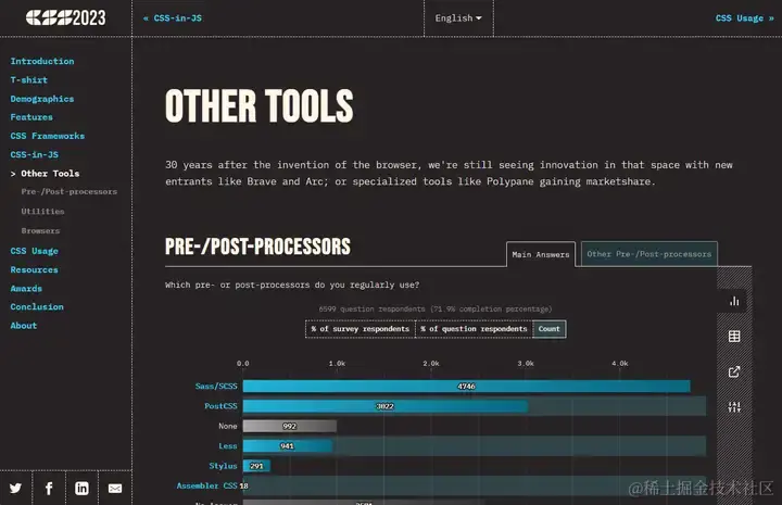 Stateofcss提供了对前端开发者在CSS方面使用情况的全面洞察,包括他们对不同CSS技术的了解程度、使用频率和满意度等方面的调查结果,从而帮助了解行业的发展趋势。