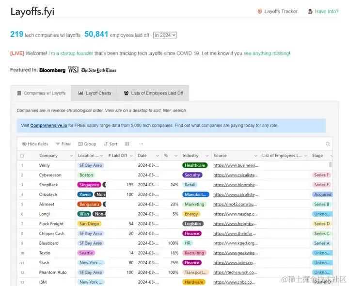Layoffs.fyi 是一个跟踪科技行业裁员情况的网站,它提供了关于科技公司裁员事件的实时更新和详细信息。该网站不仅提供了裁员公司和被裁员工的数据,还提供了裁员的原因、规模以及影响等方面的详细信息,帮助用户更全面地了解裁员事件。