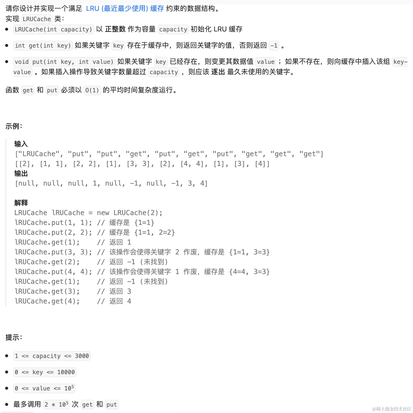 lRUCache.put(3, 3); // 该操作会使得关键字 2 作废,缓存是 {1=1, 3=3}