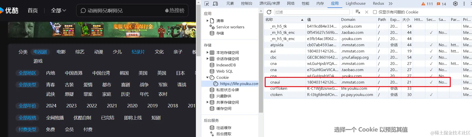 比如当我们打开淘宝、优酷等网站,会发现网站会有一些相同域名的第三方 Cookie,这些 Cookie 就是用来跟踪用户行为的。