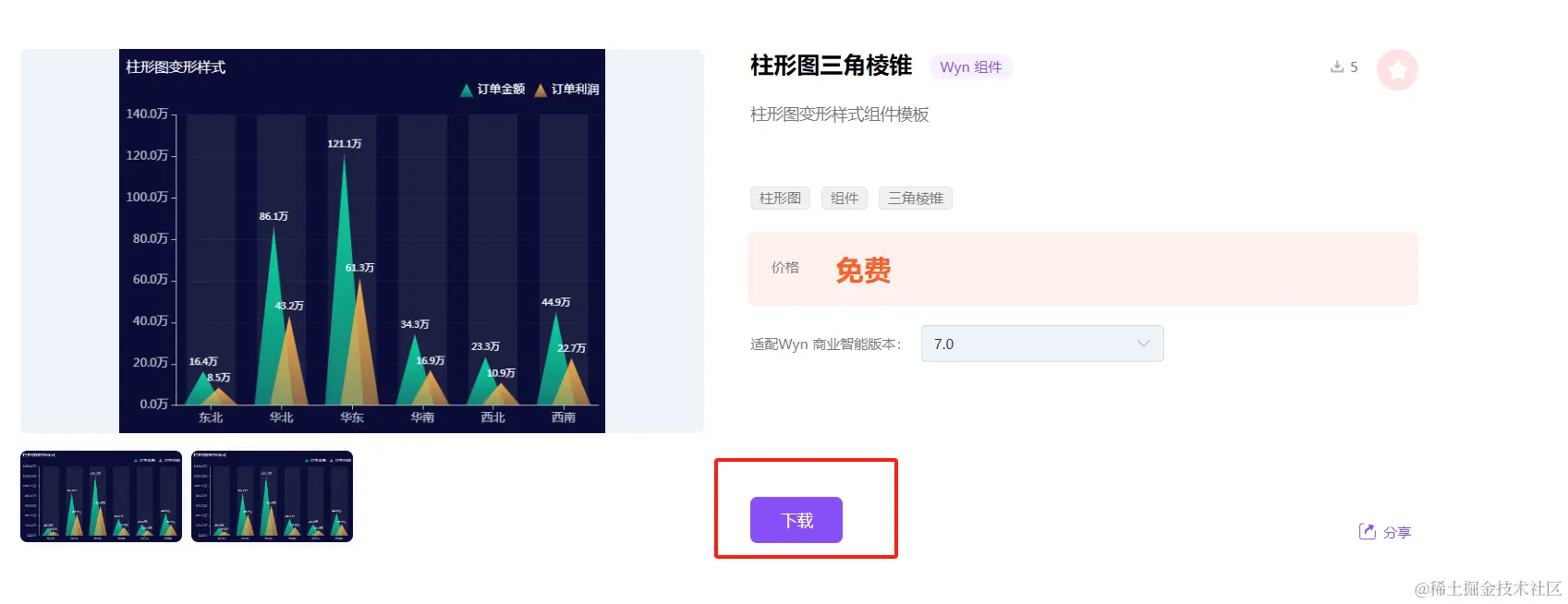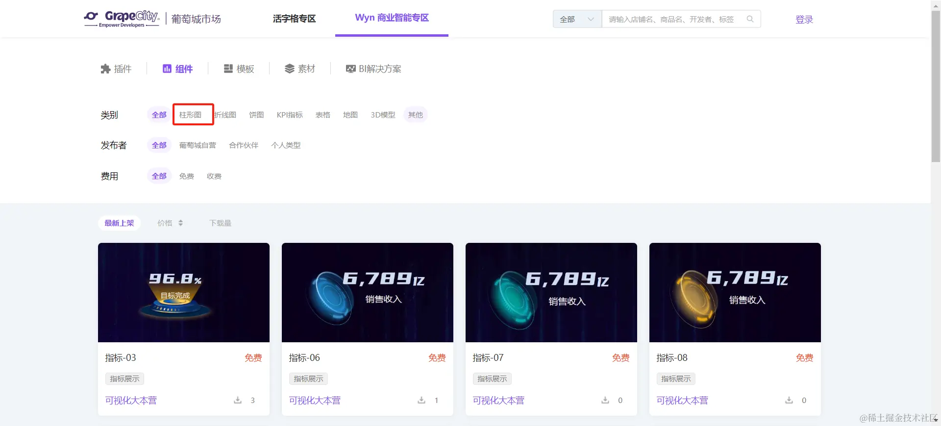 (1)打开葡萄城市场,并找到对应的组件,如下图所示。