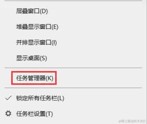 第二步:在弹出的菜单中,找到并点击 “任务管理器” 选项。